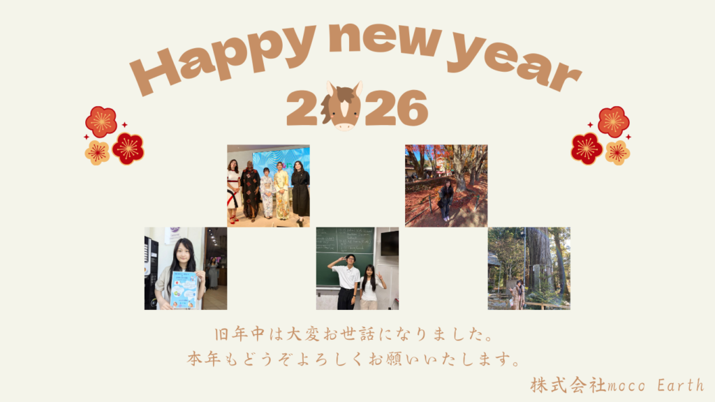 謹賀新年 2026.01.01 明けましておめでとうございます。 今年も宜しくお願い致します。 今年は自分の成長と共に真摯に向き合って頑張っていきたいと思います! よろしくお願い致します。 株式会社moco Earth 細井愛茉 一般社団法人富士河口湖町観光連盟×株式会社moco Earthコラボ企画 紅葉まつり提灯体験 最新のお知らせお知らせ一覧 2025.11.01 一般社団法人富士河口湖町観光連盟×株式会社moco Earthコラボ企画 紅葉まつり提灯体験 2025.10.27 【アートプロジェクト】Future Assembly-みんなで作る未来会議 クラウドファンディング達成 2025.10.24 【アートプロジェクト】Future Assembly-みんなで作る未来会議 国内アーティスト決定 2025.09.05 【メディア掲載】スタジオパーソルに掲載されました 2025.08.31 【アートプロジェクト】Future Assembly-みんなで作る未来会議 国内アーティスト募集 2025.08.16 【アートプロジェクト】Future Assembly-みんなで作る未来会議を開催します